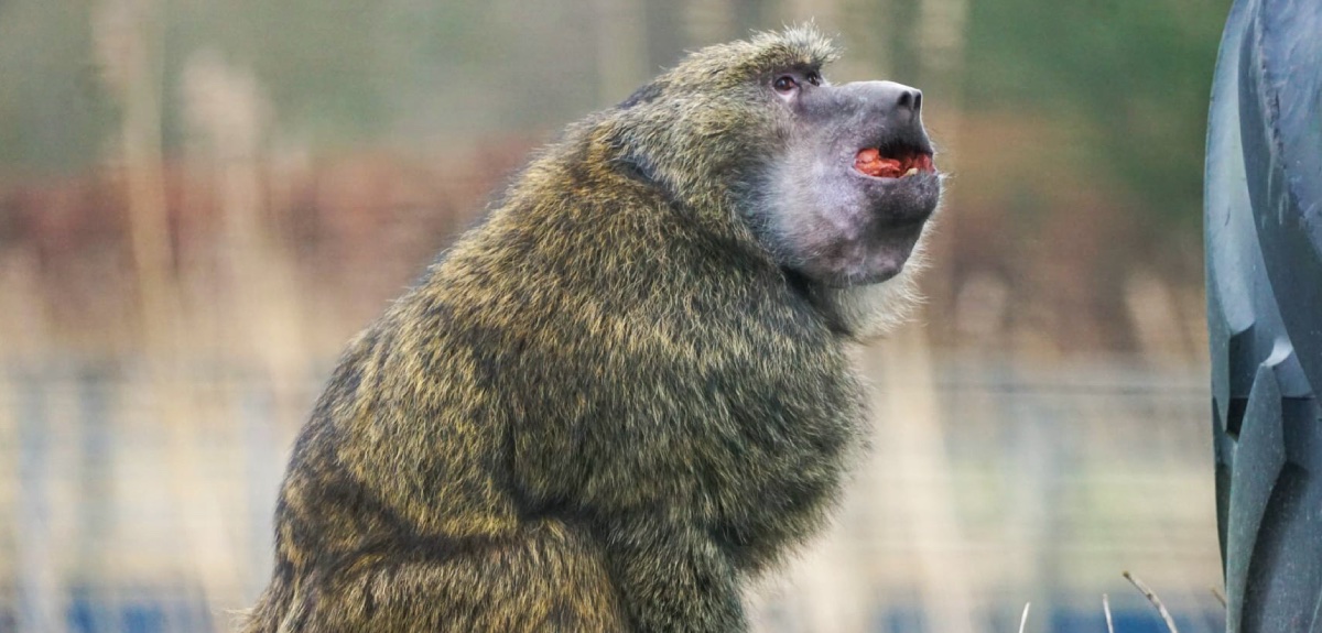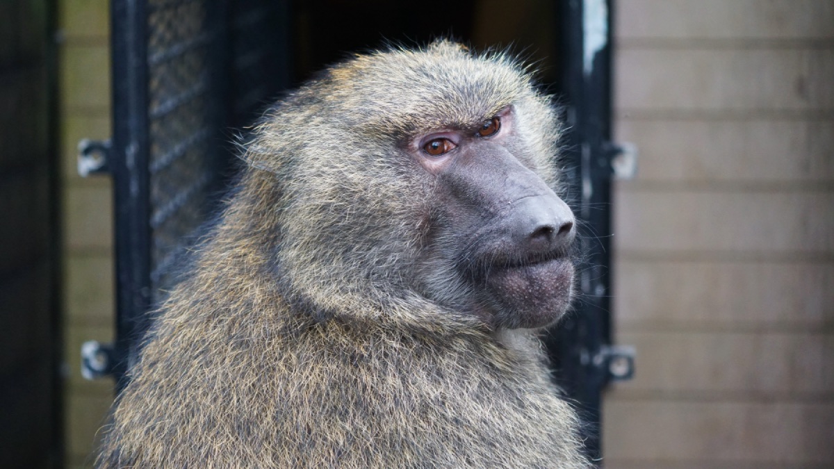 Pavian Amy wurde als Haustier an der Kette gehalten. Jetzt wohnt sie bei AAP auf den Affeninseln in einer Gruppe mit mehreren Artgenossen. Sie ist ein stures Tier bekannt und tut alles, um ihren Willen durchzusetzen.
